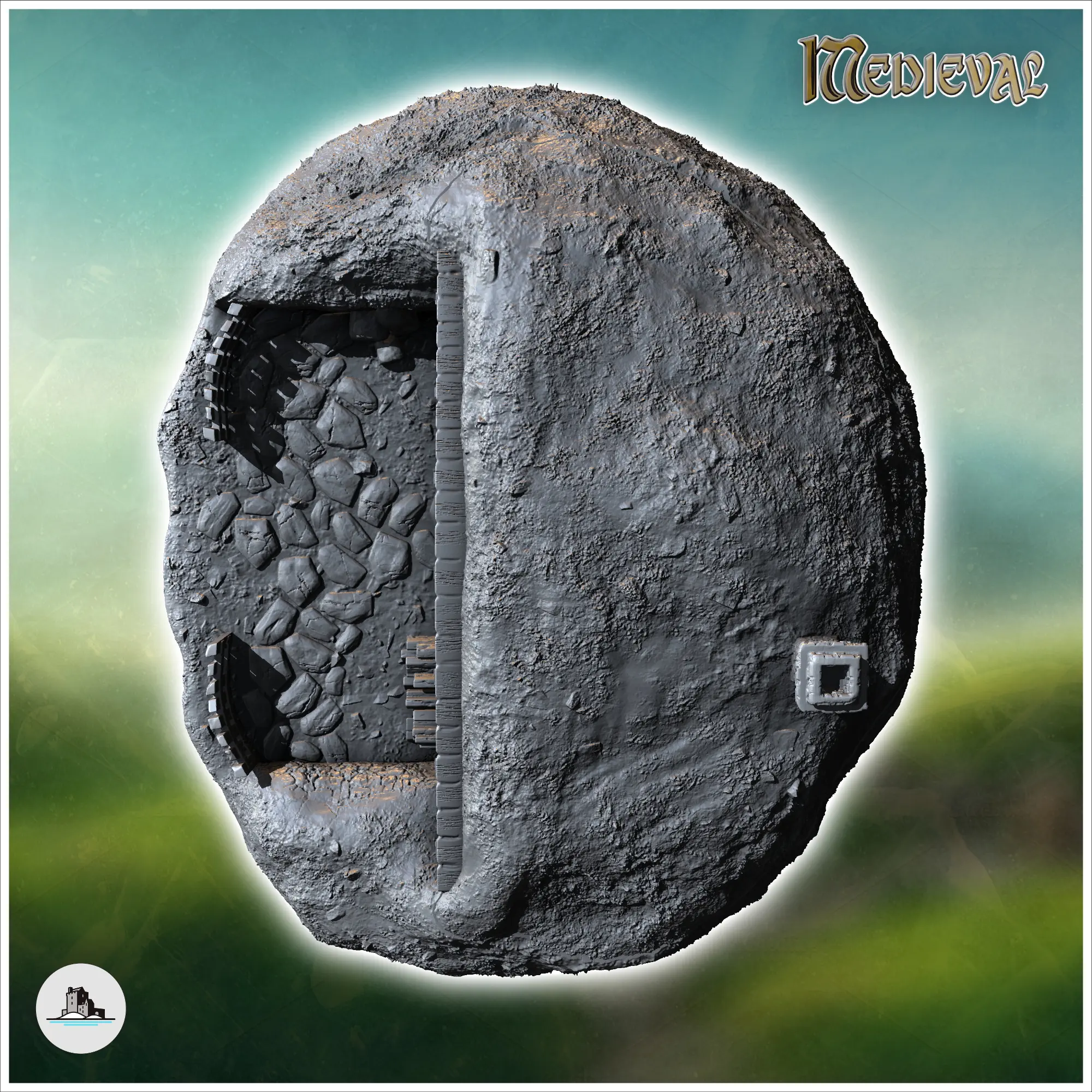 Unterirdisches Hobbit-Haus mit runder Tür und Kamin (28)-0