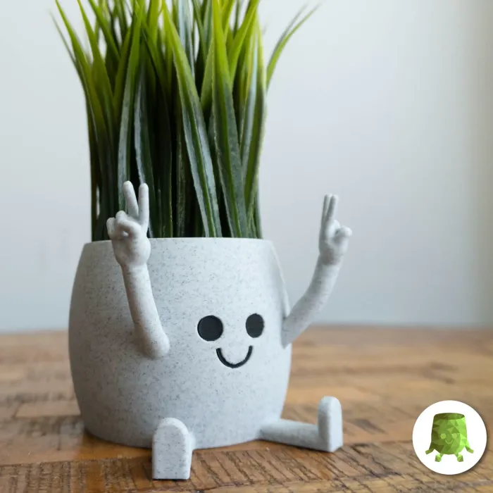 Happy Sitting Pot 2 Hands Peace Sign