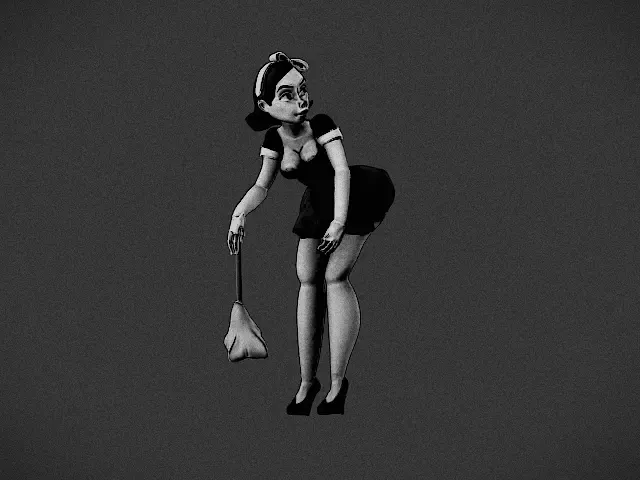 Graziosa statuetta della cameriera che spolvera