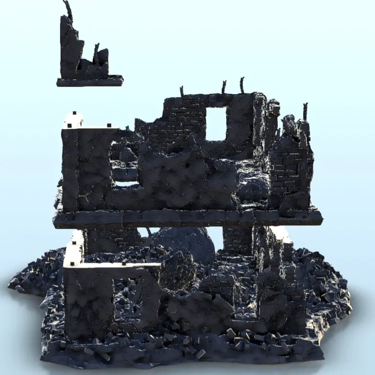 Ruined urban building 10 - WW2 Terrain scenery diaroma-2