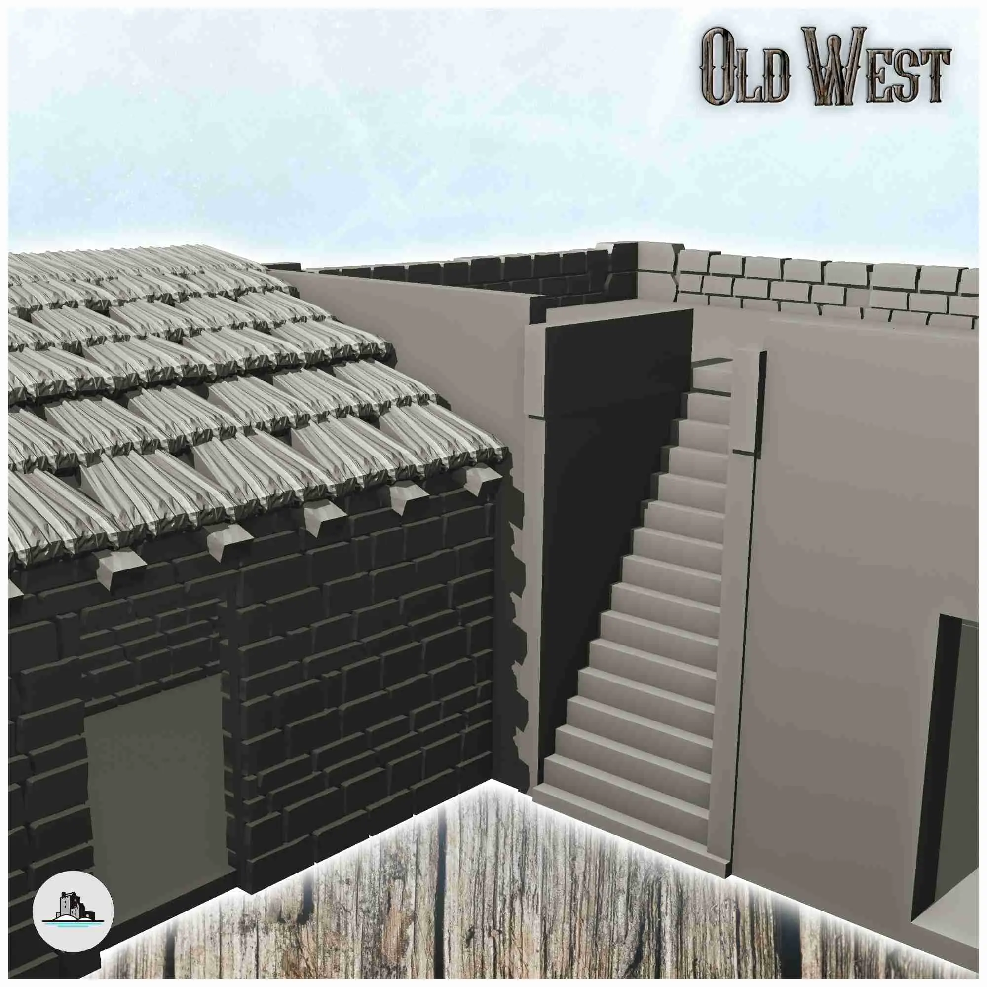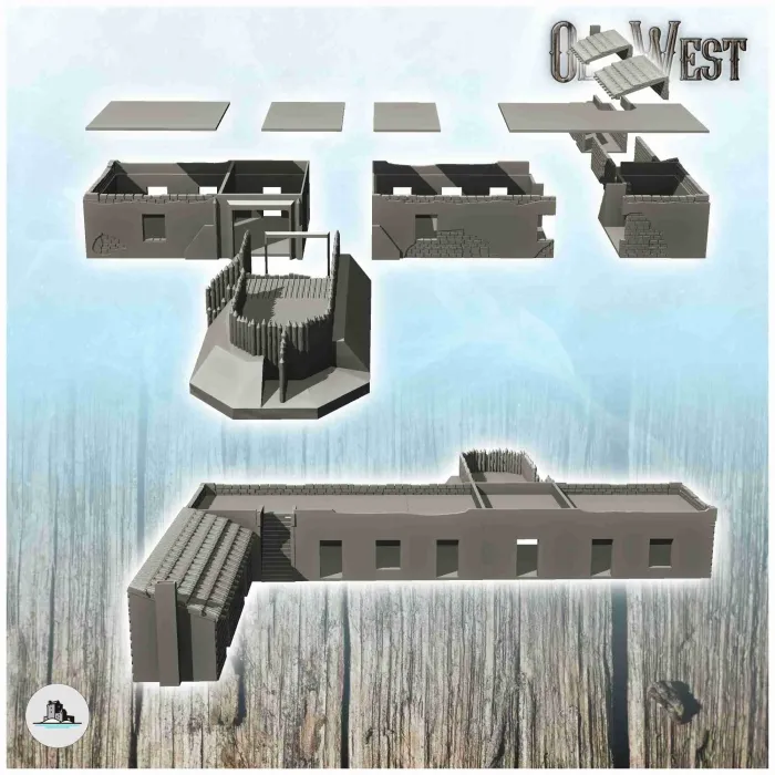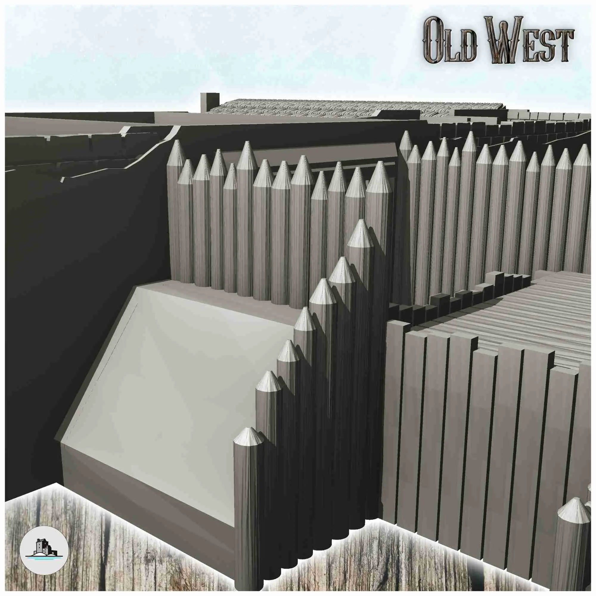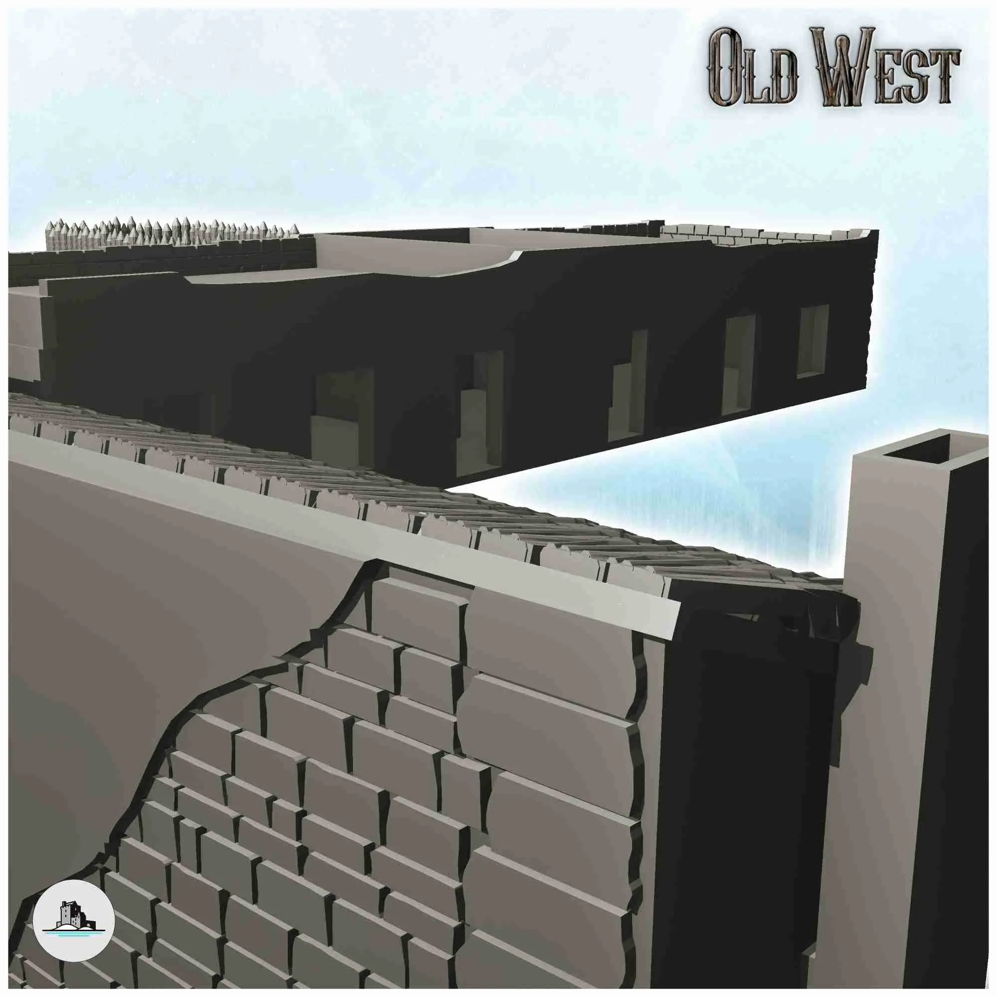 Entrance to the Alamo Fort with houses and fortification (1)-0