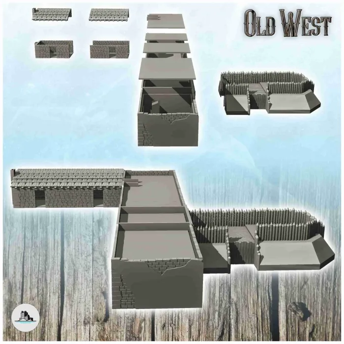 Entrance to the Alamo Fort with houses and fortification (1)-2