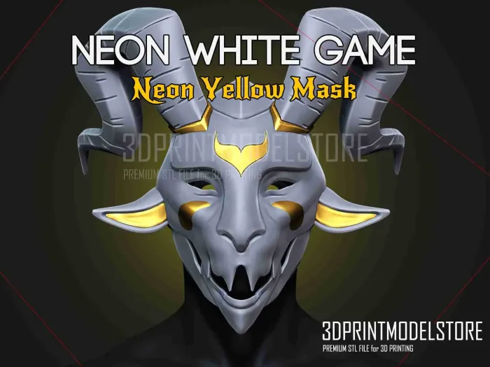 Neon White Game Yellow Mask - Japanese Kitsune Cosplay-1