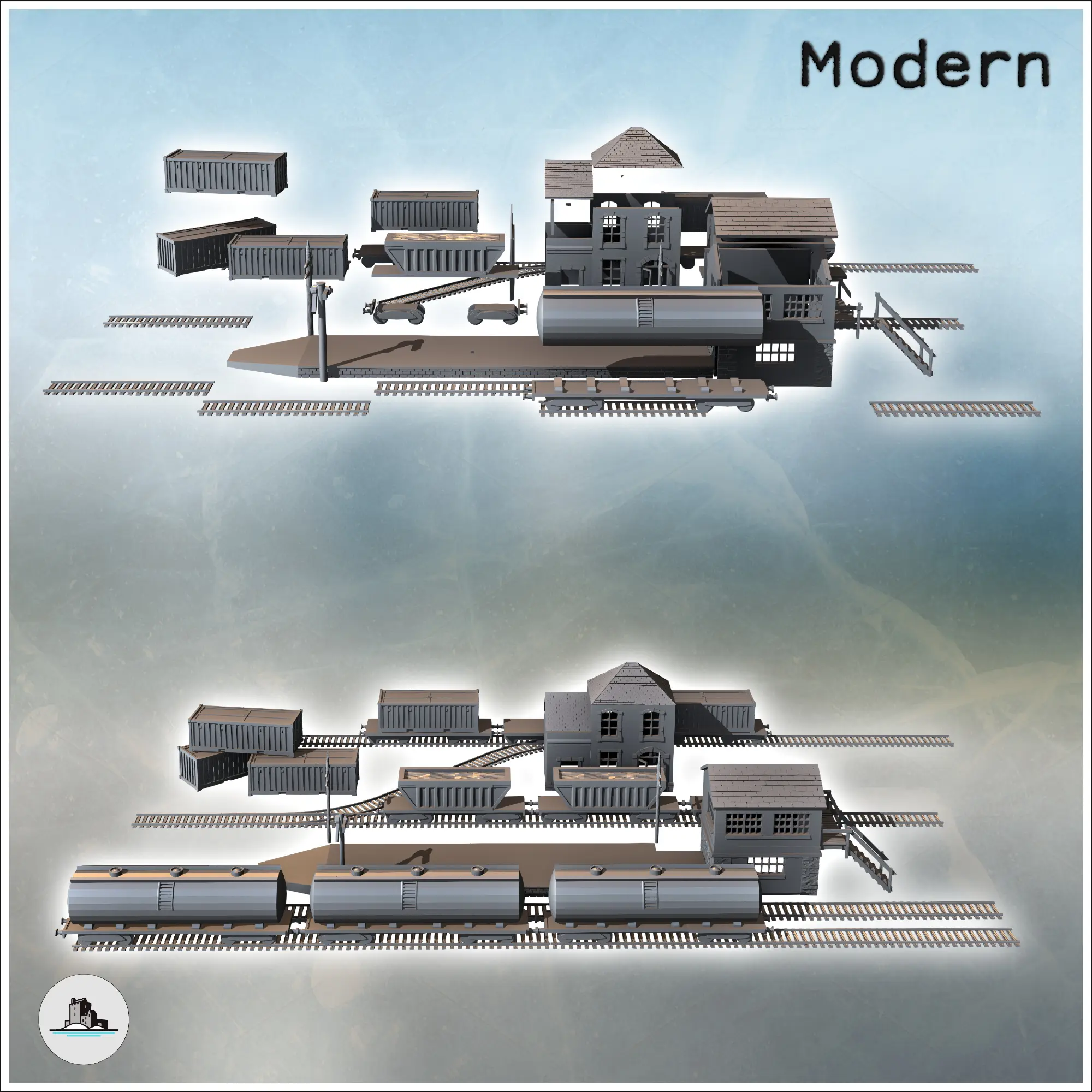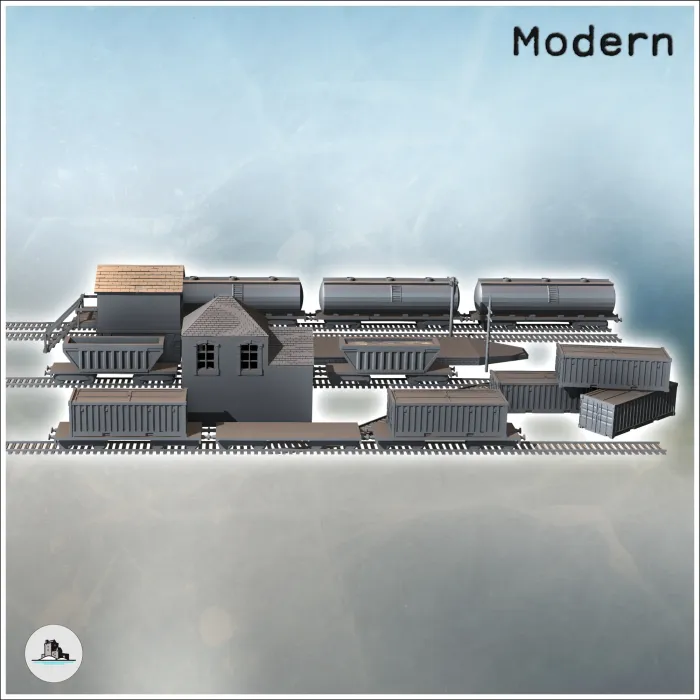 Industrial railway station with buildings, tracks and wagons-6