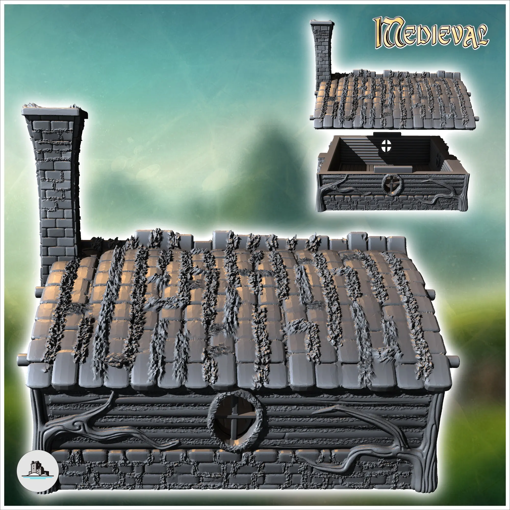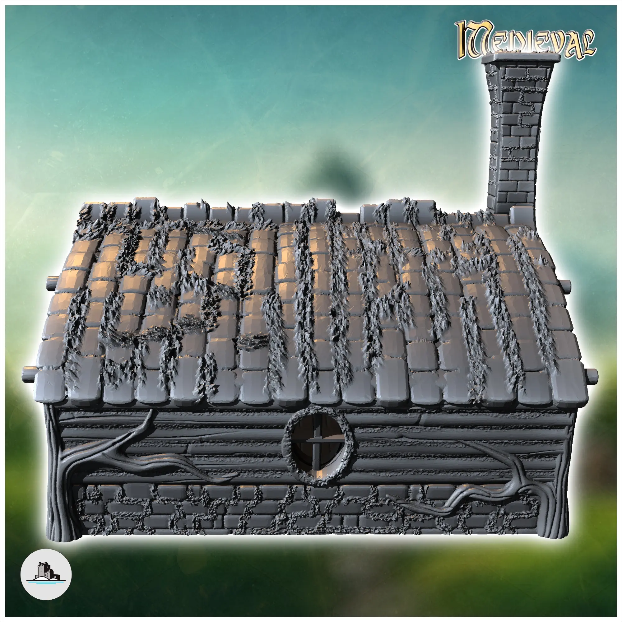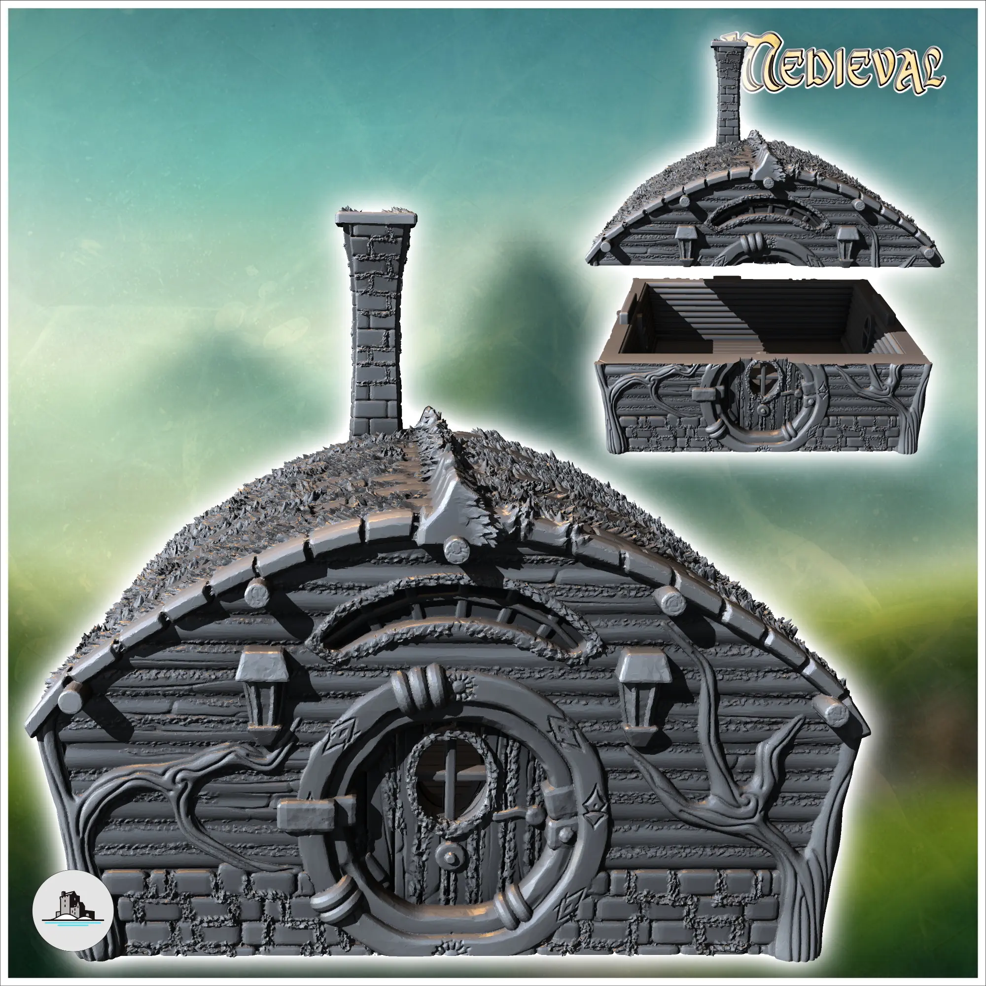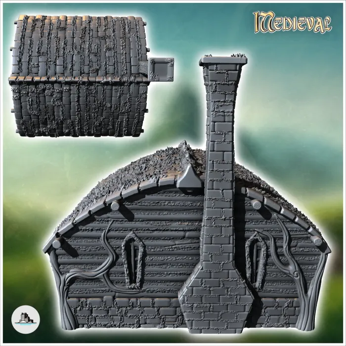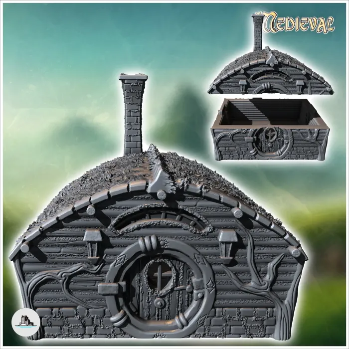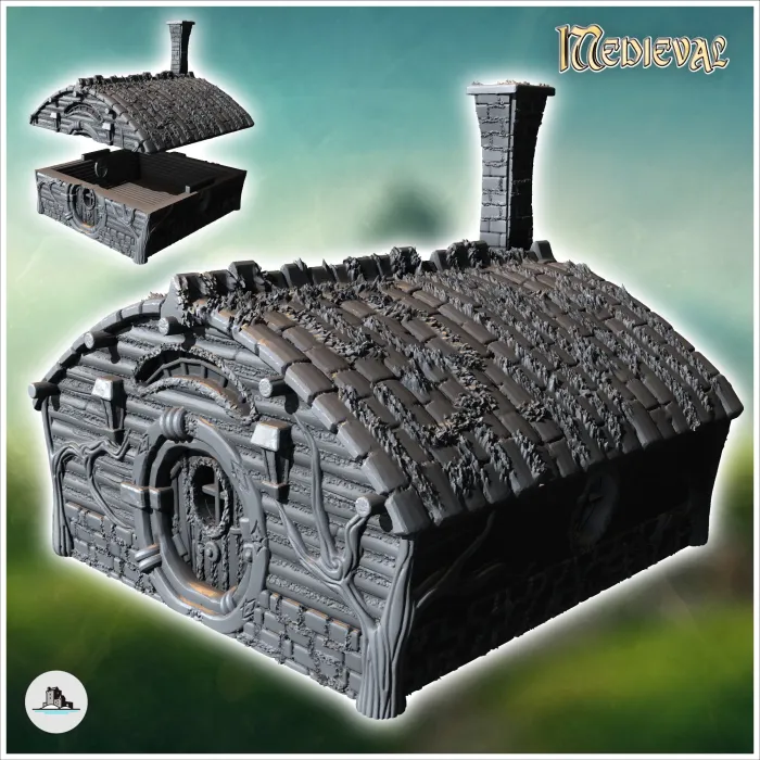 Round-door hobbit house with rounded roof and fireplace (16)