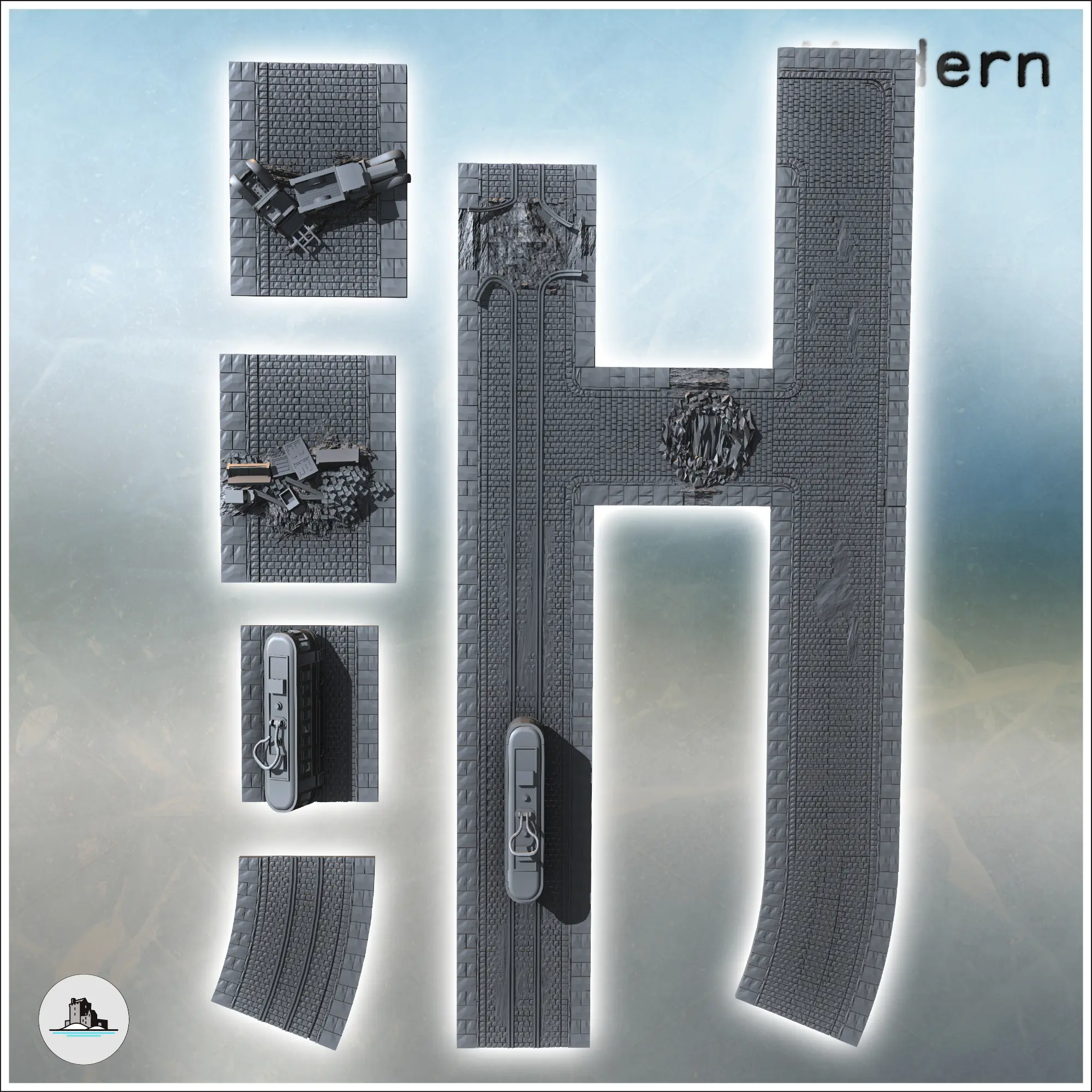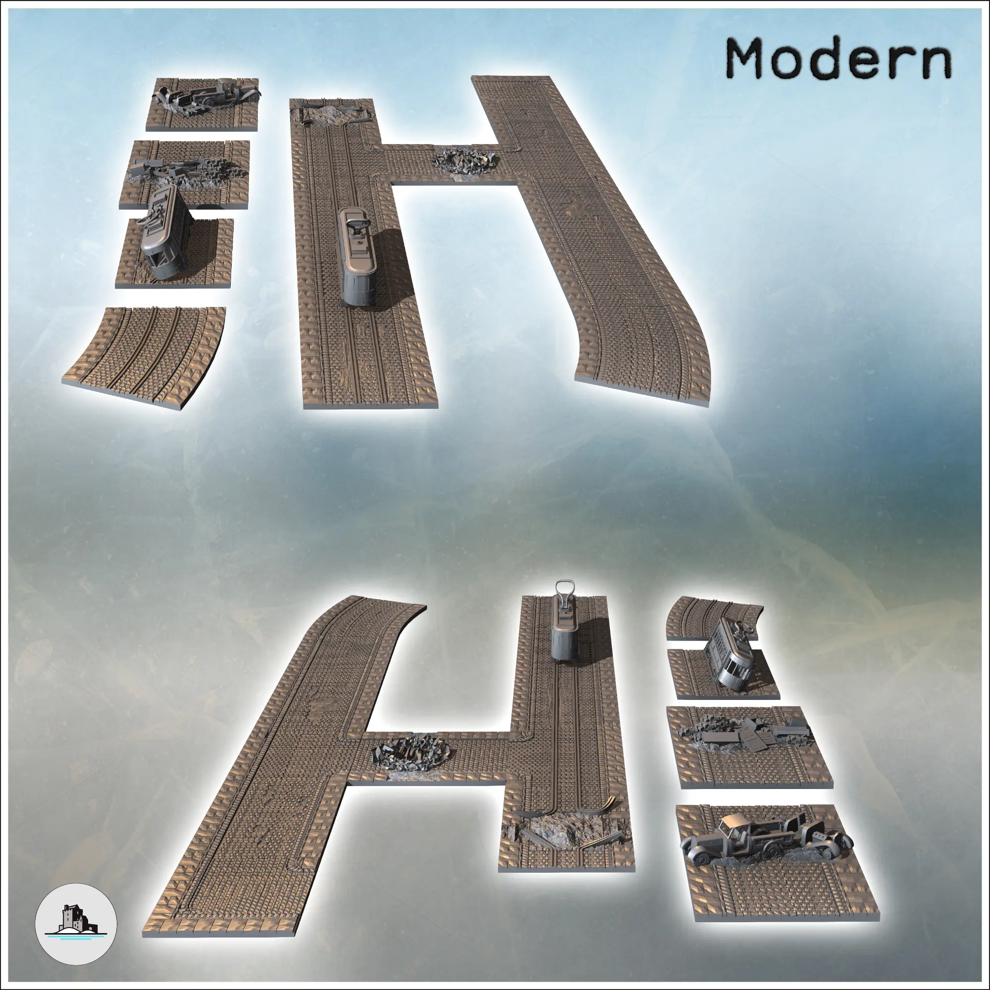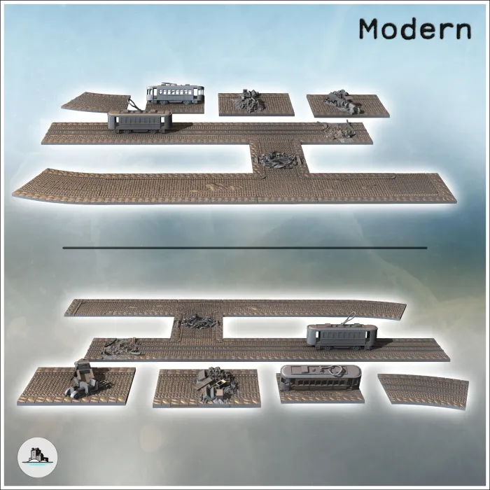Set of modular paved roads for a modern city with debris and-2