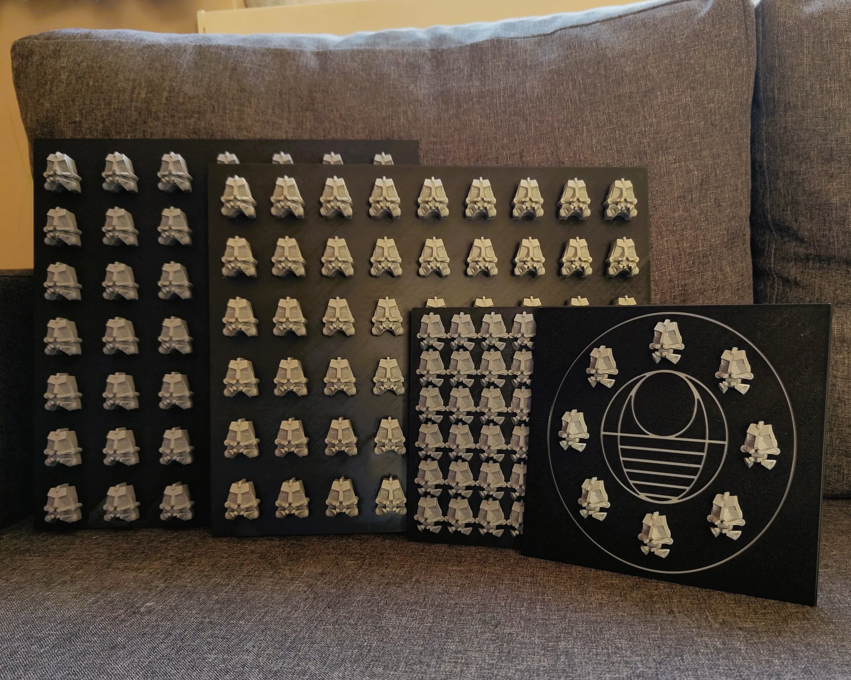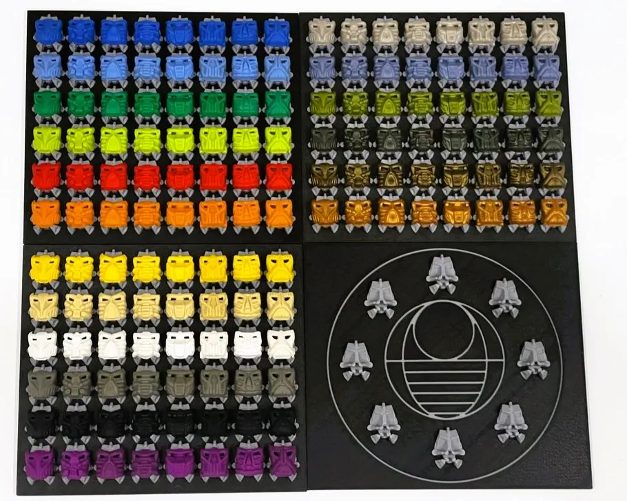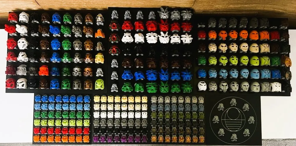Bionicle Kanohi and Krana mask exhibition boards