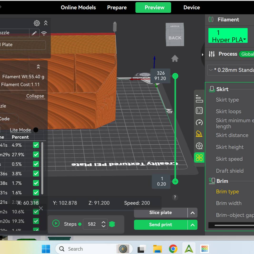 0.28mm layer, 2 walls, 15% infill
