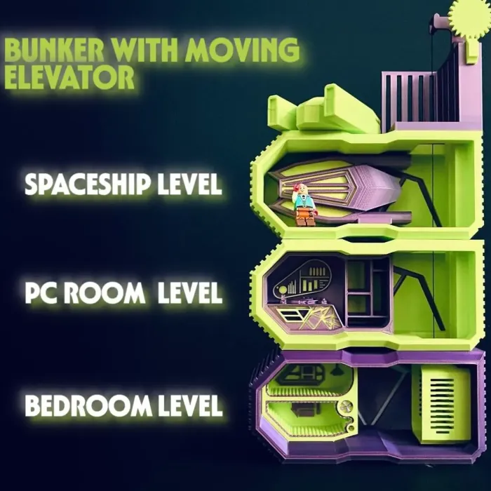 Expandable bunker with moving elevator & spaceship-0