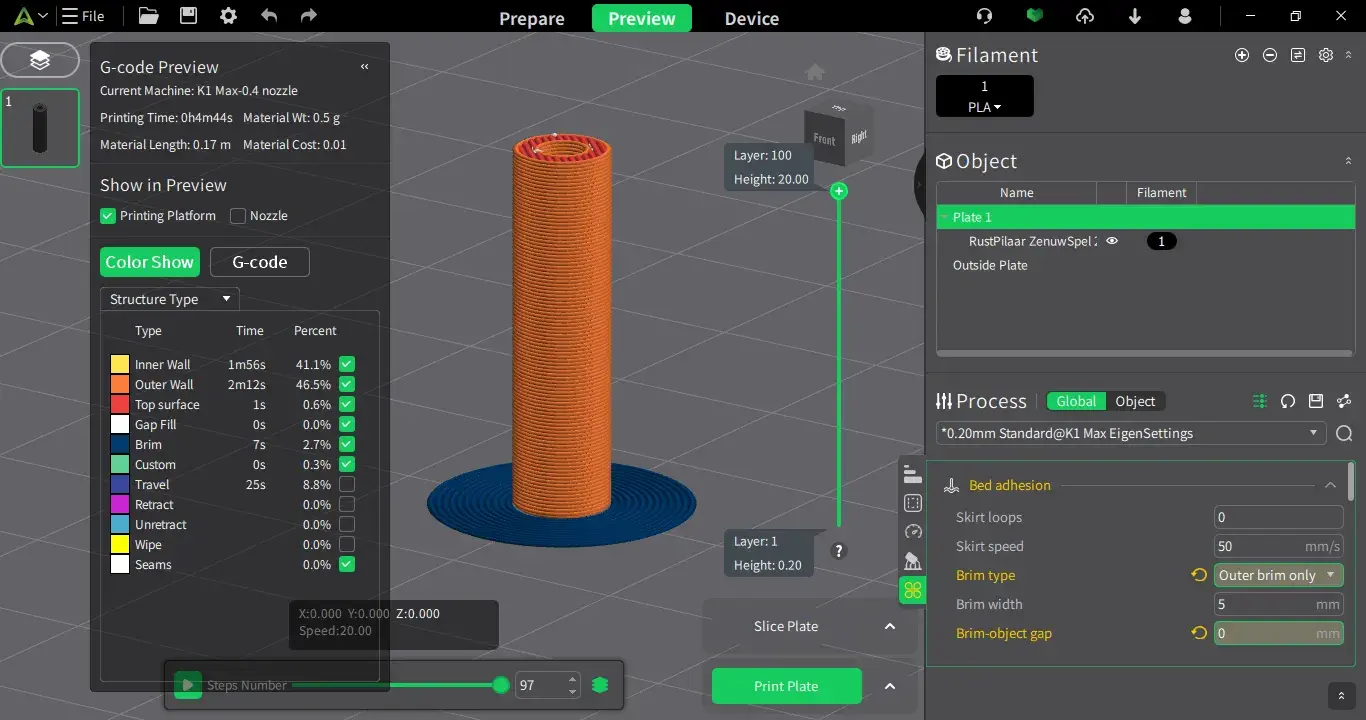 0.2mm layer, 2 walls, 15% infill