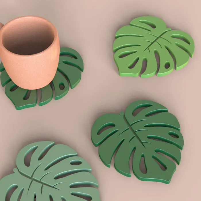 Monstera Leaf Coaster Set, 3D Tropical Printable STL File,-4