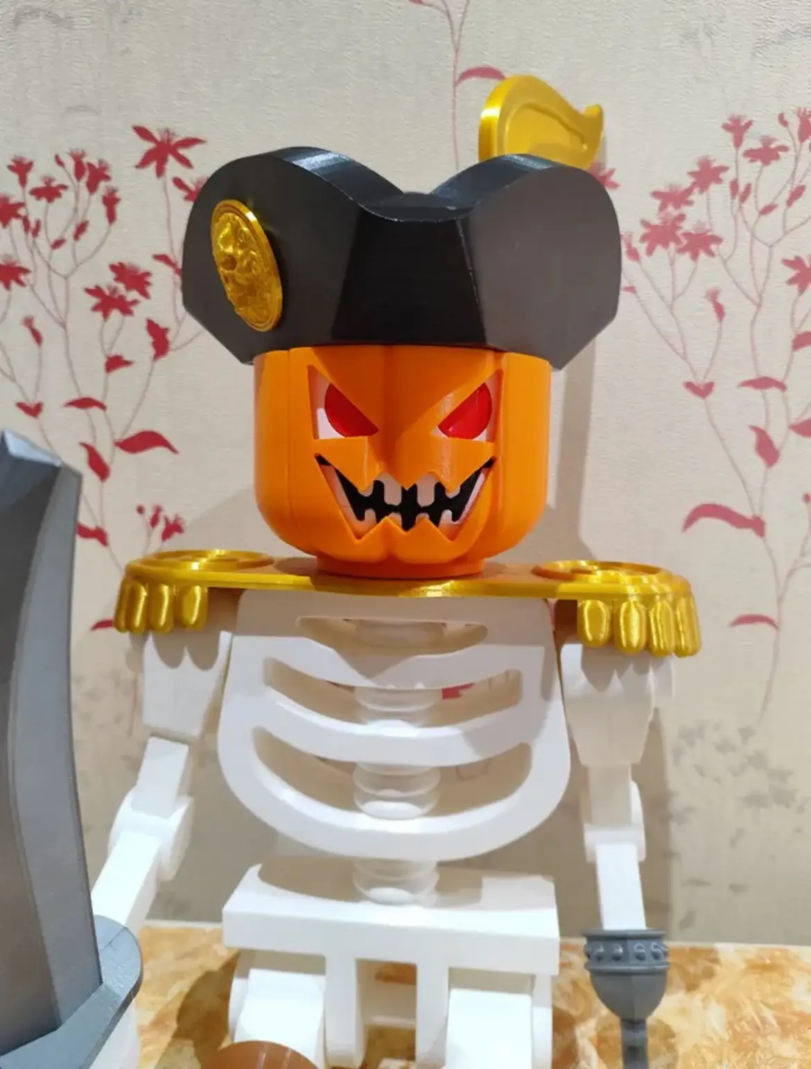 Pumpkin head to suit giant Lego skeleton-1