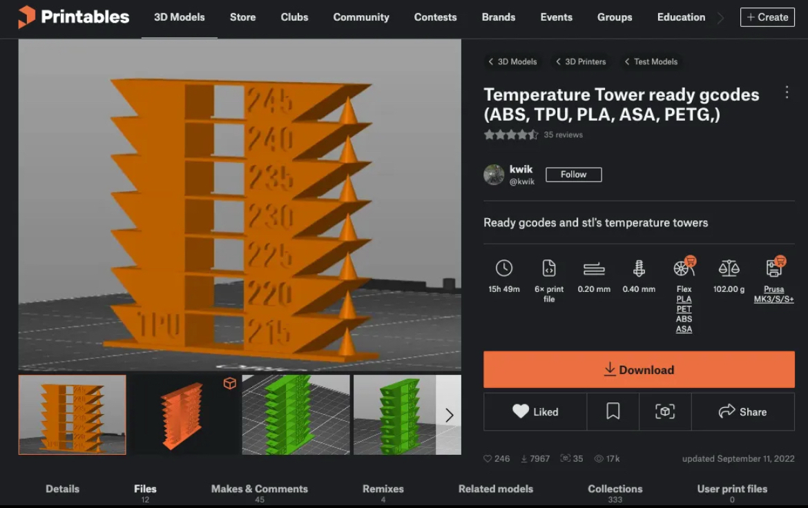 TPU temp tower test 200-230 C