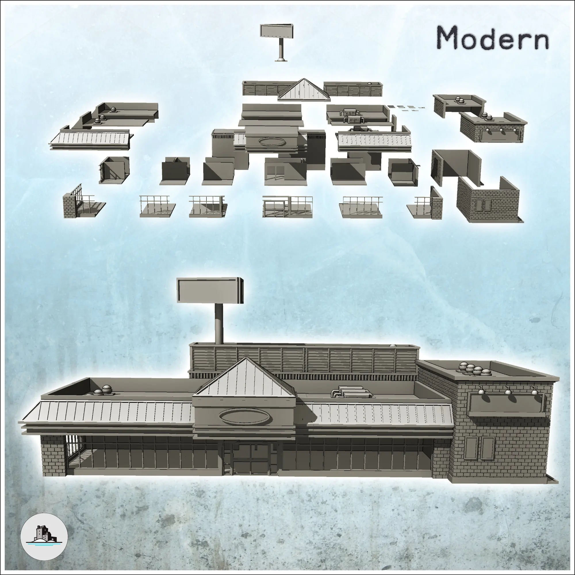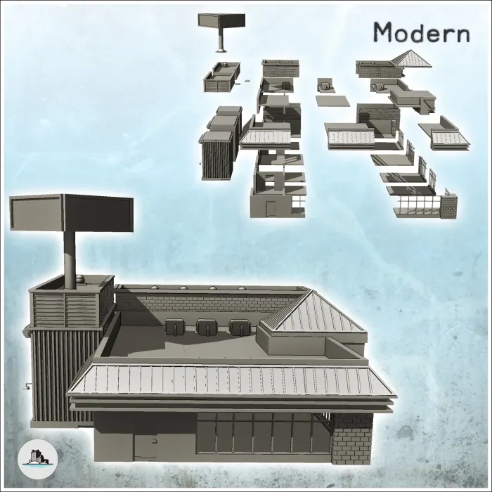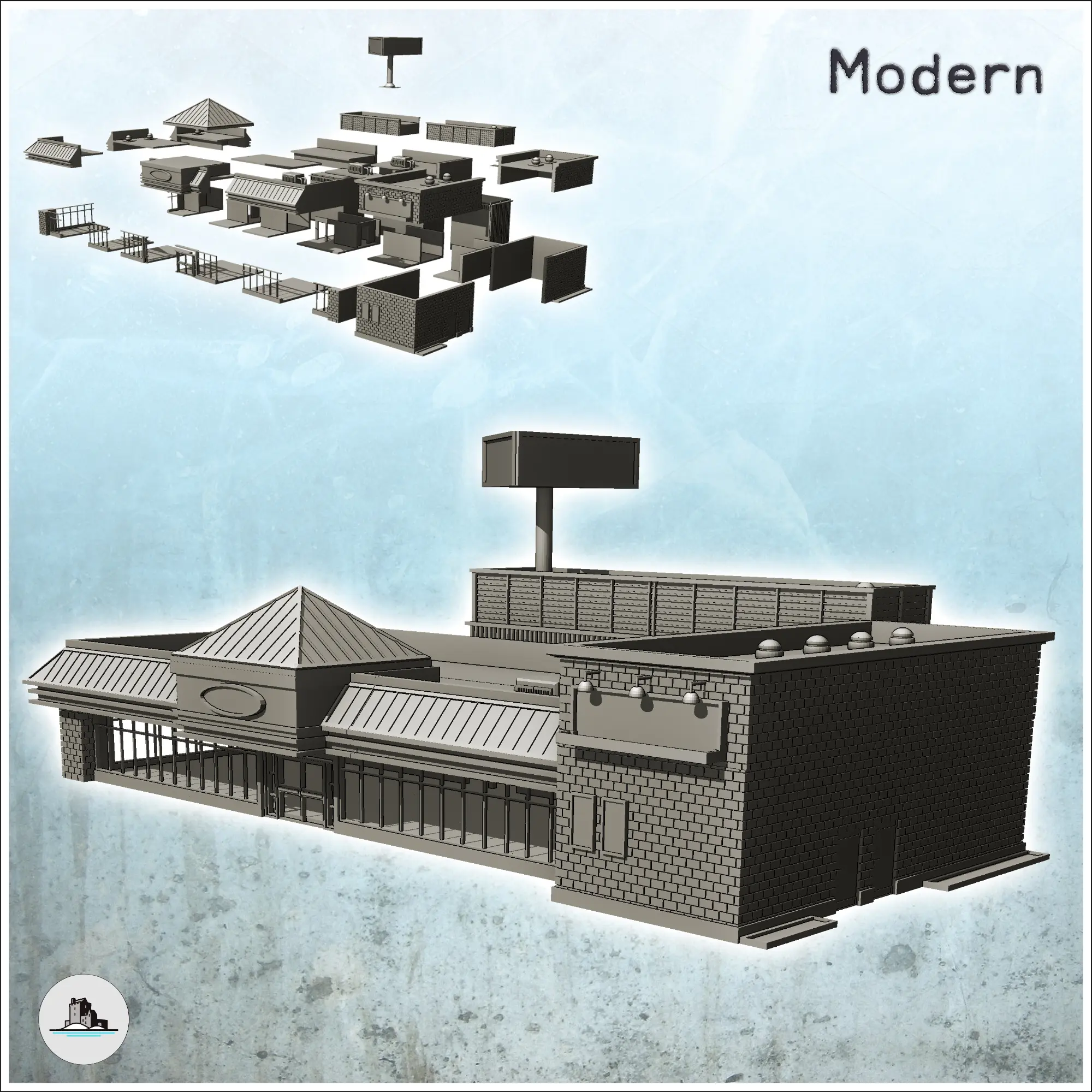Restaurant modern mare, cu ferestre mari și publicitate s-2