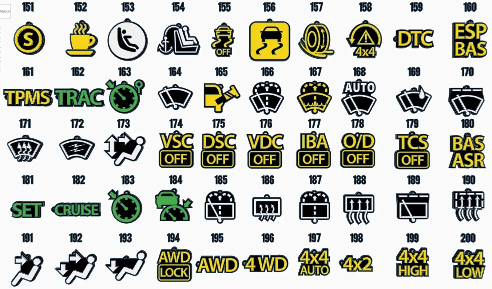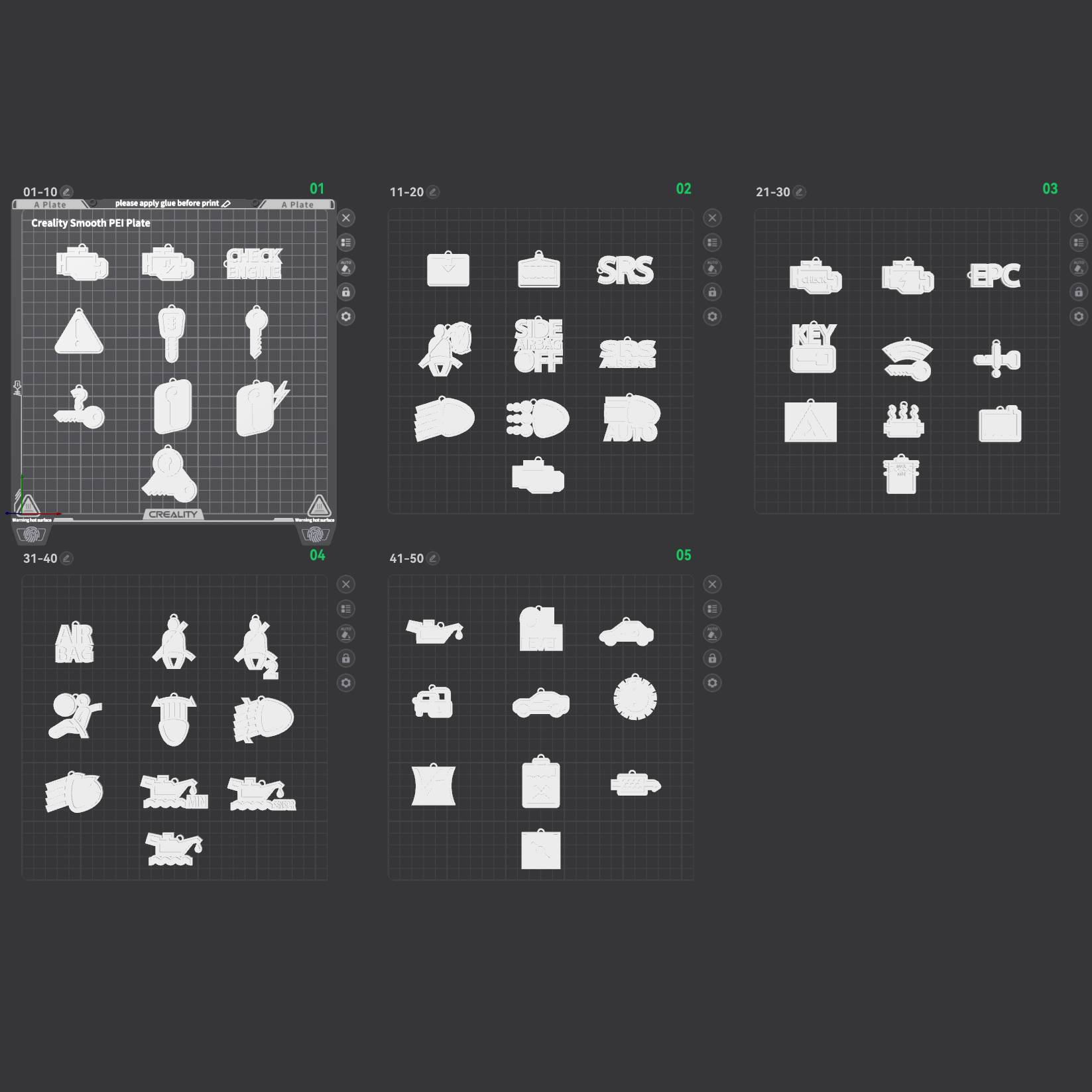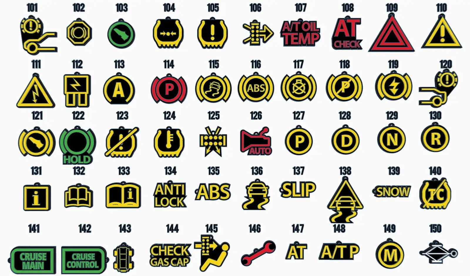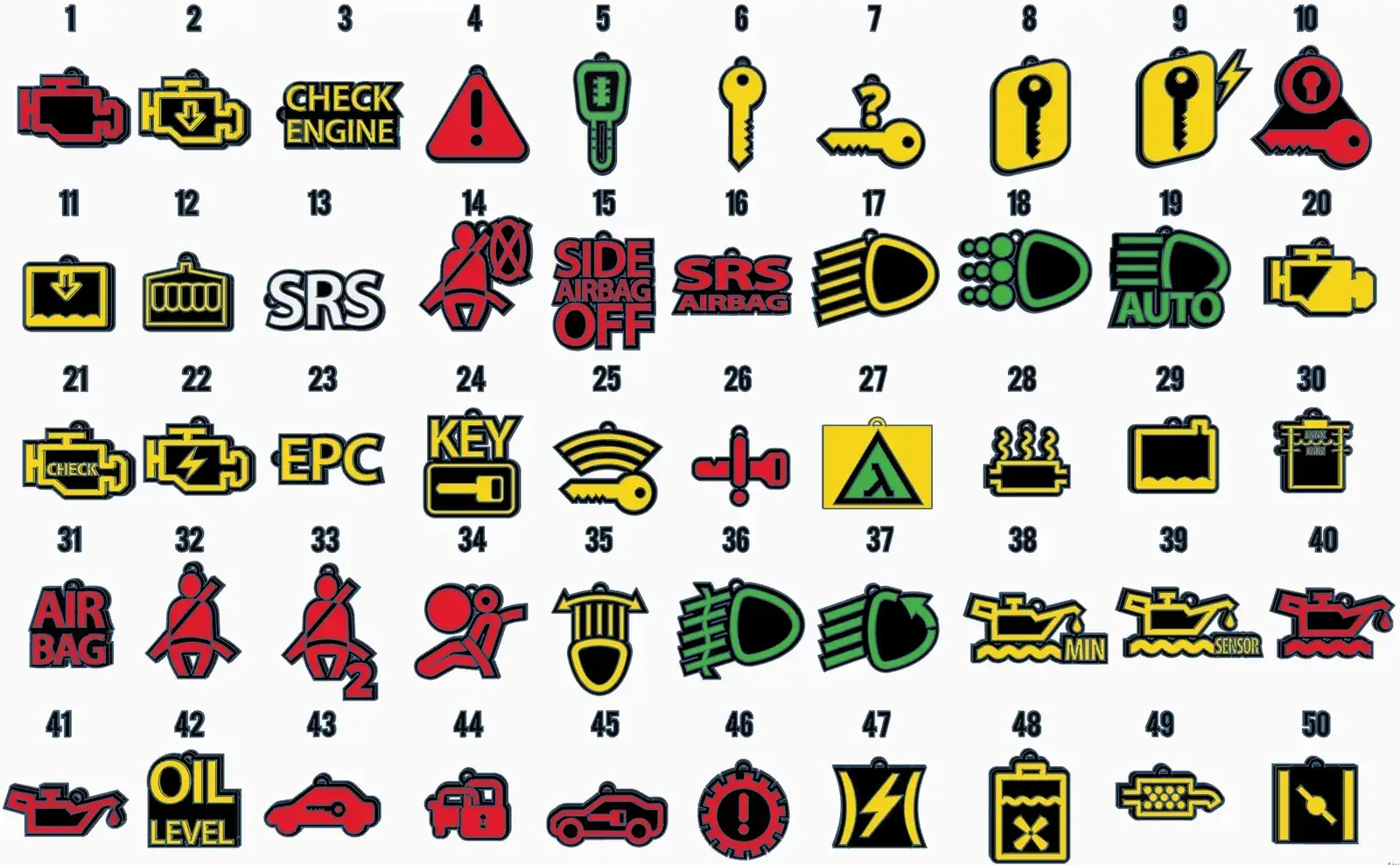 300 Car Dashboard Symbols Keychains - Part 1 (001-100)-2