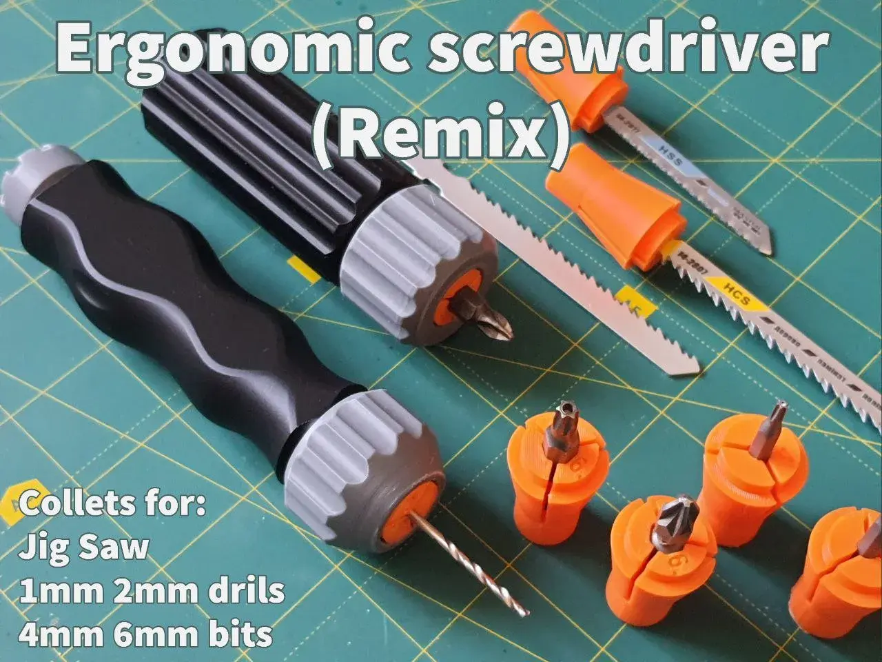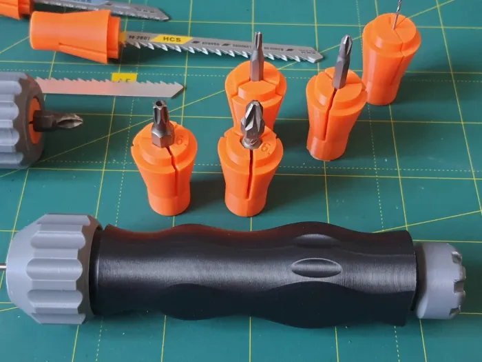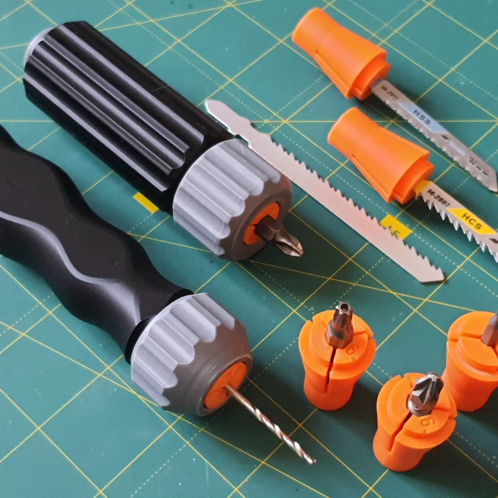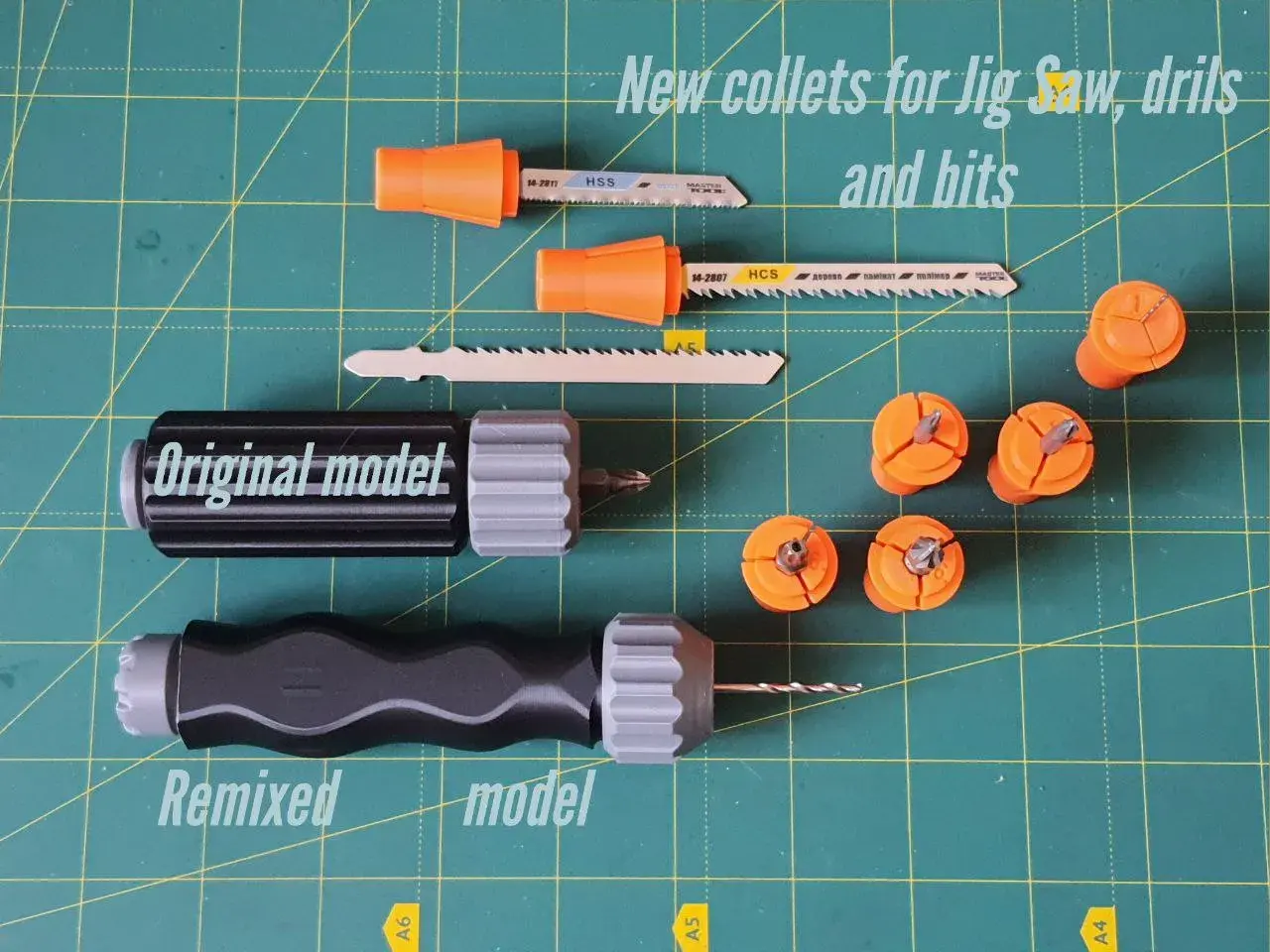 PLA, 0.2mm layer, 2 walls, 15% infill, 4sizes collet+jig saw